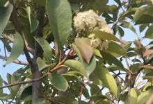 石楠 Kalkman),是蔷薇科石楠属的常绿乔木,高5~12米,株型紧凑,树冠圆球形。树枝为褐灰色;鳞片为褐色,没有毛;叶片革质,长椭圆至侧卵状椭圆形,有锯齿,新叶红色光亮。复伞房花序,白色小花,…全部>>