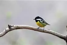 黄腹山雀是雀形目山雀科山雀属鸟类。虹膜褐色或暗褐色;嘴蓝黑色或灰蓝黑色;头、喉胸斑黑色,颊斑、颈后斑白色;上体蓝灰色,腰银白色;翼具两排白色点斑;下胸、腹鲜黄色;尾黑色,…全部>>