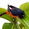 灰喉山椒鸟:共有8个亚种。体长18-22厘米。雄鸟头部和背亮黑色,腰、尾上覆羽和下体朱红色,翅黑色具一大一小的两道朱红色翼斑。中央尾羽黑色,外侧尾羽基部黑色,端部红色。…全部>>