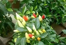 五色椒又名朝天椒,五彩辣椒,为辣椒 变种,味涩。属茄科多年生半木质性植物,常作一年生栽培;江苏沭阳一带有不少花农种植,其株高30厘米—60厘米,分枝多、茎直立,单叶互生;花白色,开花期5月初—7月…全部>>