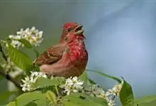 普通朱雀是雀形目雀科朱雀属鸟类,又名红朱雀、马料、青麻料。雄鸟上体红色,下体淡红色;头部、喉部、胸部及腰部亮红色;背部褐色染红色;两翼及尾黑褐色,羽缘染红色。雌鸟上体橄榄褐色,下体近白色,…全部>>