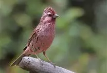 藏朱雀:全长约17-18厘米。雄鸟头部深红色具光辉,喉部暗红色具白色点斑;背部灰白色,各羽具玫瑰红色羽端,形成许多斑纹;腰部淡玫瑰红色;翅暗褐色,沾灰白,羽端沾玫瑰红或灰白色;尾暗棕色,端缘玫瑰红色…全部>>