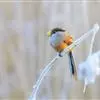 点胸鸦雀是莺科、鸦雀属小型鸟类,体长18-21厘米。头顶至枕橙棕色,嘴橙黄色、短而粗厚,脸皮黄色,耳覆羽和颊后部黑色,眼圈白色。上体棕褐色。颏黑色,其余下体淡皮黄白色,喉和上胸具黑色矢状斑。…全部>>