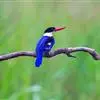 蓝翡翠是佛法僧目翠鸟科翡翠属鸟类。嘴粗长似凿,基部较宽,嘴峰直;翼圆。体色以蓝色、白色及黑色为主;额、头顶、头侧和枕部黑色;后颈白色,向两侧延伸与喉胸部白色相连,…全部>>