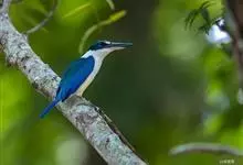 白领翡翠:有50个亚种。体长18厘米,体重35-40克。是一种蓝白色翡翠鸟。头顶、两翼、背及尾呈亮丽蓝绿色;过眼纹黑色;眼先黑色,眼眉白色或浅黄色,嘴上部具白点。以白色的颈环及下体为识别特征。…全部>>