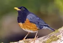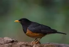 黑胸鸫属中型鸟类,体长20-30厘米。雄鸟整个头、颈、胸黑色,其余上体暗灰色,下体橙棕色,极为醒目。嘴、脚蜡黄色。雌鸟上体橄榄褐色,颏、喉白色,上胸橄榄褐色具黑色斑点,其余与雄鸟相似。…全部>>