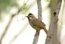 白颊噪鹛是雀形目噪鹛科噪鹛属鸟类,又称土画眉、小画眉、小噪鹃。成鸟额至头顶栗褐色,长眉纹、眼先和颊纹棕白色,眼后至耳羽深褐色,…全部>>