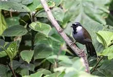 黑喉噪鹛是噪鹛属鸟类。体长24-29厘米,体重75-90克。雄鸟前额、眼先、眼周和眼后纹以及颊、须和喉黑色;黑色前额和蓝灰色头顶之间有道白色细斑;颈侧具椭圆形白斑,…全部>>