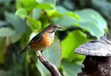 赤颈鸫是鸫科、鸫属中型鸟类,体长22-25厘米。上体灰褐色,有窄的栗色眉纹。颏、喉、上胸红褐色,腹至尾下覆羽白色,腋羽和翼下覆羽橙棕色。虹膜暗褐色,嘴黑褐色,下嘴基部黄色,脚黄褐色或暗褐色。…全部>>