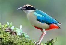 蓝翅八色鸫是雀形目八色鸫科的鸟类。体长17-20厘米,体重类约48-70克,体型圆胖,尾短,腿长,以身体具有红、绿、蓝、白、黑、黄、褐、栗等鲜艳夺目,丰富艳丽的色彩而得名,是很有观赏价值的鸟类。主要…全部>>