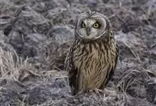 短耳鸮又名小耳木兔、田猫王、夜猫子等,是鸮形目鸱鸮科耳鸮属中小型猛禽动物。成鸟面盘显著,眼周黑色;眼先及内侧眉纹灰白色,面盘余部棕黄色杂以黑色细羽干纹;耳簇羽短小而几乎不外露,…全部>>