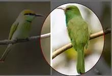 黄喉蜂虎属中型鸟类,体长23-30厘米。喉黄色,其下有一窄的黑色胸带;胸带以下的整个下体蓝绿色。前额蓝白色,具一宽的黑色贯眼纹,头顶至后颈暗栗色,尾蓝绿色,中央尾羽延长,明显突出于其他尾羽。…全部>>