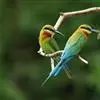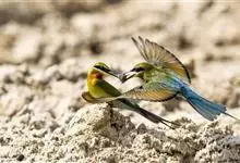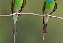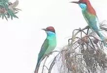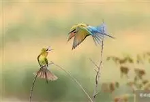 蓝颊蜂虎:是蜂虎科、蜂虎属的鸟类,共有2个亚种。体长27-33厘米,翼展46-49厘米,体重38-50克。嘴形细长而下弯,先端尖,…全部>>