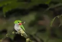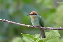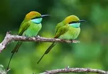 绿喉蜂虎是佛法僧目、蜂虎科的小型鸟类,共有9个亚种。身长22-25厘米,翼展29-30厘米,体重15-20克。喉绿色,额部、头顶至上背为锈红色,其余上体均为亮绿色。中央尾羽延长且端段狭细,…全部>>