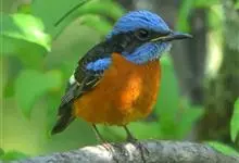 蓝头矶鸫为鹟科矶鸫属的鸟类,是一种候鸟,俗名臭皮翠、白喉叽鸫、白喉石鸫、葫芦翠、虎皮翠。全长19厘米。自额至后颈及翅上的小覆羽均钴蓝色。腰和尾上覆羽浓栗。内侧飞羽有一白色块斑。喉部中央有一大型白斑。…全部>>