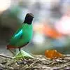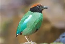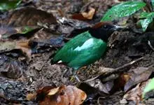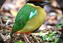绿胸八色鸫:是雀形目八色鸫科的鸟类,共有12个亚种。体长为16-18厘米,体重65-69克。体型圆胖,尾短,腿长。头黑,上体绿色,两翼深色而具白色斑纹,头顶至后枕深褐,胸及腹部苹果绿,臀亮红。…全部>>