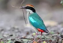 蓝翅八色鸫是雀形目八色鸫科的鸟类。体长17-20厘米,体重类约48-70克,体型圆胖,尾短,腿长,以身体具有红、绿、蓝、白、黑、黄、褐、栗等鲜艳夺目,丰富艳丽的色彩而得名,是很有观赏价值的鸟类。主要…全部>>