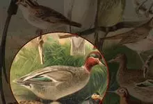 赤颈鸭属中型鸭类,个体较家鸭小,和罗纹鸭大小差不多,体长41-52厘米,体重0.6千克左右。雄鸟头和颈棕红色,额至头顶有一乳黄色纵带。背和两胁灰白色,满杂以暗褐色波状细纹,翼镜翠绿色,翅上覆羽纯白色。…全部>>