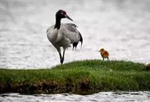 黑颈鹤:是鹤科、鹤属的大型涉禽,体长110-120厘米,体重4-6千克。颈、脚甚长,通体羽毛灰白色,头部、前颈及飞羽黑色,眼先和头顶前方裸露的皮肤呈暗红色,尾羽褐黑色。头顶,三级飞羽的羽片分散,…全部>>