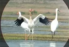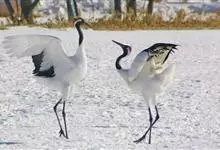 丹顶鹤:是鹤科、鹤属的一种大型涉禽,体长120-160厘米。颈、脚较长,通体大多白色,头顶鲜红色,喉和颈黑色,耳至头枕白色,脚黑色,站立时颈、尾部飞羽和脚黑色,头顶红色,…全部>>