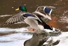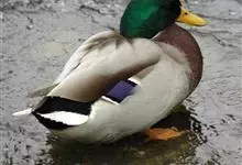 绿头鸭属游禽,大型鸭类。体长47-62厘米,体重大约1千克,外形大小和家鸭相似。雄鸟嘴黄绿色,脚橙黄色,头和颈辉绿色,颈部有一明显的白色领环。上体黑褐色,腰和尾上覆羽黑色,两对中央尾羽亦为黑色,且向…全部>>