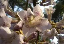 白花泡桐 Hemsl.)别名大果泡桐、通心条、饭桐子、泡桐等,为泡桐科泡桐属的乔木。其树冠圆锥形,树皮灰褐色,幼枝被黄褐色星状绒毛;叶片长卵状心脏形,有时为卵状心脏形,新枝上的叶下有星毛及腺,…全部>>
