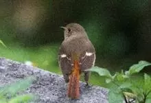 赭红尾鸲:小型鸟类,体长13-16厘米。雄鸟前额、头侧、颈侧、颏至胸概黑色,头顶和背灰色或黑色,腰、尾上覆羽、尾下覆羽、外侧尾羽和腹栗棕色,中央尾羽褐色,两翅黑褐色。雌鸟上体和两翅淡褐色,…全部>>