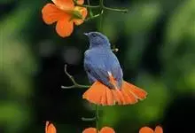 红胁蓝尾鸲俗名:蓝点冈子、蓝尾巴根子、蓝尾杰、蓝尾欧鸲。体型略小而喉白的鸲。特征为橘黄色两胁与白色腹部及臀成对比。雄鸟上体蓝色,眉纹白;亚成鸟及雌鸟褐色,尾蓝。…全部>>