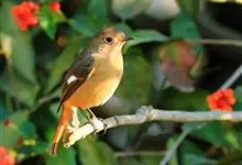 红胁蓝尾鸲俗名:蓝点冈子、蓝尾巴根子、蓝尾杰、蓝尾欧鸲。体型略小而喉白的鸲。特征为橘黄色两胁与白色腹部及臀成对比。雄鸟上体蓝色,眉纹白;亚成鸟及雌鸟褐色,尾蓝。…全部>>