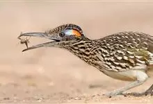 走鹃是杜鹃科、走鹃属动物。中型鸟类,体长50-62厘米,体重220-340克。羽毛为橄榄褐和白色相间,有一条纹;羽冠非常短而且蓬松。眼后的皮肤裸露着,蓝红相间,它的腿非常粗壮,呈浅蓝色;尾巴比较长,…全部>>