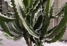 霸王鞭,是大戟科大戟属的多年生肉质灌木,全株含白色乳汁;茎直立,茎基部圆柱形,上部4~5纵棱,边缘波状,外面深绿色;叶互生,上部叶密集,近于簇生,具短柄,其基部有利刺1对;叶片披针形,先端圆,…全部>>