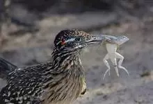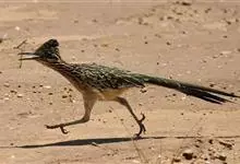 走鹃是杜鹃科、走鹃属动物。中型鸟类,体长50-62厘米,体重220-340克。羽毛为橄榄褐和白色相间,有一条纹;羽冠非常短而且蓬松。眼后的皮肤裸露着,蓝红相间,它的腿非常粗壮,呈浅蓝色;尾巴比较长,…全部>>