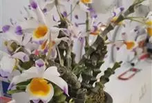 肿节石斛,是兰科石斛属多年生草本植物。肿节石斛茎斜立或下垂,肉质,圆柱形;叶纸质,长圆形;花序生于已落叶老茎上部,花白色,上部紫红色,有香气;花瓣宽长圆形,唇瓣白色,中部以下金黄色,上部紫红色,…全部>>