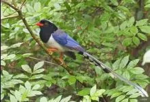 红嘴蓝鹊,别名山鹊、长尾鹊,是鸦科蓝鹊属的一种观赏性较强的大型鸣禽。该物种为体长54~65cm,头、颈、喉和胸黑色,头顶至后颈有一块白色至淡蓝白色或紫灰色块斑,其余上体紫蓝灰色或淡蓝灰褐色。尾长呈凸状,…全部>>