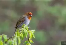 红额金翅雀:共有14个亚种。小型鸟类,体长12-14厘米。额、脸颊和颏朱红色,眼先和眼周黑色,在淡色的头部极为醒目。上体灰褐或乌褐色,尾上覆羽白色,两翅和尾黑色,翅上有黄色斑。下体喉、胸灰褐或乌褐色…全部>>