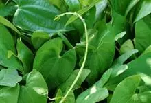 薯蓣是缠绕草质藤本。块茎为长圆柱形,垂直生长,长可达1米多,断面干时白色。茎通常带紫红色,右旋,无毛。单叶,在茎下部的互生,顶端渐尖,基部深心形、宽心形或近截形,边缘常3浅裂至3深裂。叶腋内常有珠芽。…全部>>