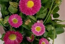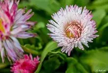 雏菊,菊科雏菊属的多年生或一年生葶状草本植物。其株高约10厘米,叶子呈匙形,顶端是圆的,上半部有疏钝齿或波状齿;总花苞呈半球形或宽钟形,舌状花有一层,管状花较多;瘦果是倒卵形的,扁平,有边脉,…全部>>