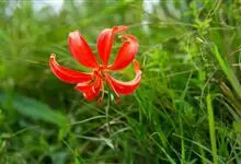 山丹是百合科百合属的多年生草本植物。鳞茎卵形或圆锥形,鳞片长圆形或长卵形,白色;叶散生茎中部,线形,边缘有乳头状突起;花单生或数朵成总状花序,花鲜红色,常无斑点,花被片反卷,…全部>>