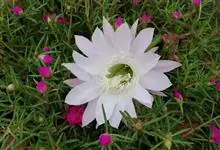 仙人球花 仙人掌科,仙人球属。植株单生或成丛。幼株球形,老株长成圆筒状,高可达75厘米,直径12-15厘米。球体暗绿色,具棱11-12。刺锥状,黑色,长1-1.5厘米。花着生于球体侧方,大型嗽喇叭状…全部>>