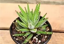 条纹十二卷 Haw.)是芦荟科十二卷属植物,为多年生肉质草本植物。植株高度10-15厘米,其呈莲座状生长;叶片紧密轮生在茎轴上,柔软多汁,呈长三角状披针形,极肥厚;叶面光滑、扁平,色深绿;叶背突起,…全部>>