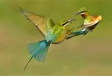 蓝颊蜂虎:是蜂虎科、蜂虎属的鸟类,共有2个亚种。体长27-33厘米,翼展46-49厘米,体重38-50克。嘴形细长而下弯,先端尖,…全部>>