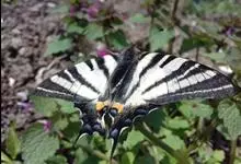 中华虎凤蝶是鳞翅目凤蝶科虎凤蝶属昆虫。双翅颜色为黄底黑纹,色如虎皮;雌、雄斑纹相同,但雌蝶的黄色往往要略深一些;后翅外缘呈波浪状,长有较短的尾突;除翅外,整体黑色,…全部>>