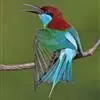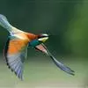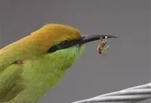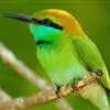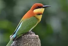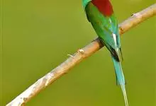 绿喉蜂虎是佛法僧目、蜂虎科的小型鸟类,共有9个亚种。身长22-25厘米,翼展29-30厘米,体重15-20克。喉绿色,额部、头顶至上背为锈红色,其余上体均为亮绿色。中央尾羽延长且端段狭细,…全部>>