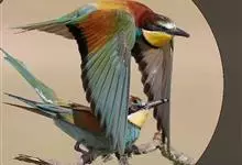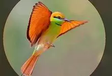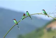 栗喉蜂虎是蜂虎科蜂虎属的鸟类。有热带鸟类羽毛艳丽的特征:喉部是栗红色的,黑色的过眼纹,翅膀和背部是绿色的,尾翼是蓝色的,飞行时翅膀下面的羽毛是橙黄色的,在阳光的照射下,它们全身闪烁着金属般的艳丽光泽,…全部>>