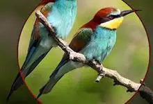 蓝喉蜂是蜂虎科蜂虎属鸟类。体长26-28厘米,嘴长而弯曲,有明显细长的中央尾羽。头部、颈部和背部为巧克力色,有黑色眼纹。喉部、腰部和尾羽为蓝色。腹部和两翼为绿色。幼鸟外观似成鸟,头部、颈部和背部为绿色,…全部>>
