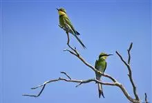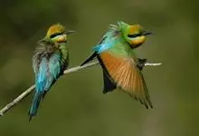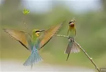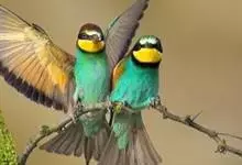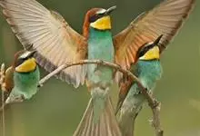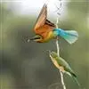 蓝颊蜂虎:是蜂虎科、蜂虎属的鸟类,共有2个亚种。体长27-33厘米,翼展46-49厘米,体重38-50克。嘴形细长而下弯,先端尖,…全部>>