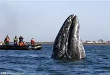灰鲸,隶属于鲸偶蹄目须鲸亚目灰鲸科,体围比须鲸科的种类大,但比露脊鲸小;它的成体长10至15米,最大体重超过35吨。体形呈纺锤状,躯干粗胖,在鳍肢附近最粗,向尾部逐渐变细。无背鳍,…全部>>