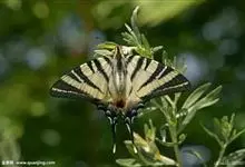中华虎凤蝶是鳞翅目凤蝶科虎凤蝶属昆虫。双翅颜色为黄底黑纹,色如虎皮;雌、雄斑纹相同,但雌蝶的黄色往往要略深一些;后翅外缘呈波浪状,长有较短的尾突;除翅外,整体黑色,…全部>>