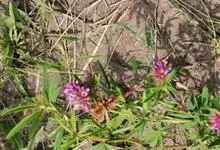 绛车轴草是豆科车轴草属的一年生草本植物。绛车轴草茎直立或上升,粗壮,被长柔毛,具纵棱;掌状三出复叶,托叶椭圆形,小叶宽倒卵形或近圆形;花序圆筒状,顶生;荚果卵圆形,种子褐色;花果期5-7月。…全部>>
