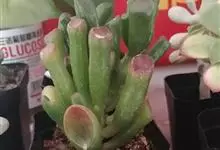筒叶花月,是景天科青锁龙属的多年生草本植物。植株多分株,灌木状,茎较粗壮,圆柱形,表皮灰褐色;叶片肉质,互生,呈圆筒状,簇生于茎或分枝顶端,叶端呈斜截形,截面为椭圆形;花呈星状,淡白色;花期秋季。…全部>>